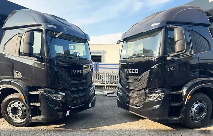 Camion Iveco neri allestiti parcheggiati uno di fronte all’altro da Mini-Car